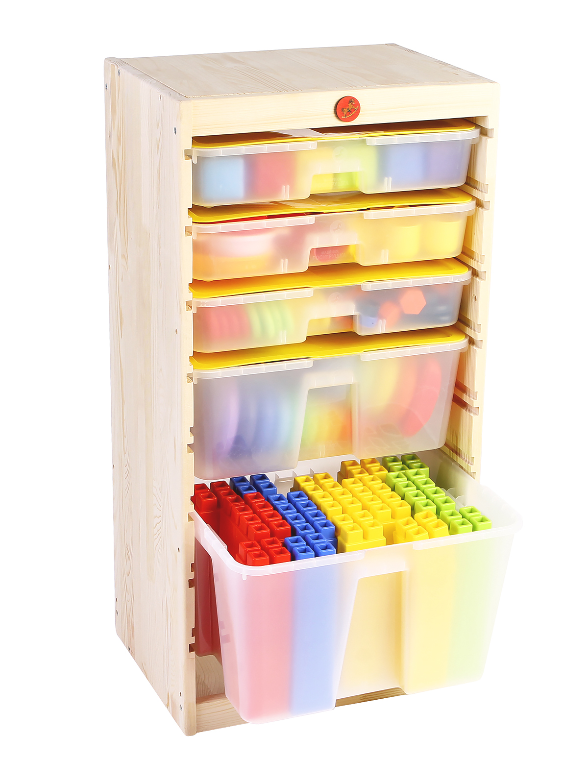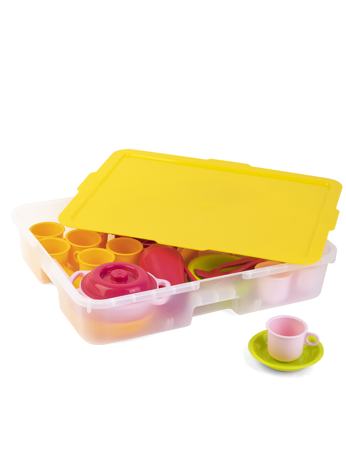 Комплектация: 8324 Игровой стеллаж 520 х 460 7120 Комплект детской посуды, 67 предметов 7135 Комплект инструментов, 36 предметов 7253 Игровой набор Профессии, 29 предметов 7139 Комплект Напольная мозаика, 100 деталей