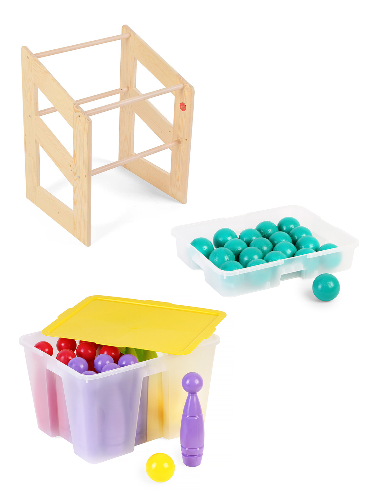 Стеллаж наклонный 680х2 контейнера с игровым комплектом Физкультура для детей 3-7 лет