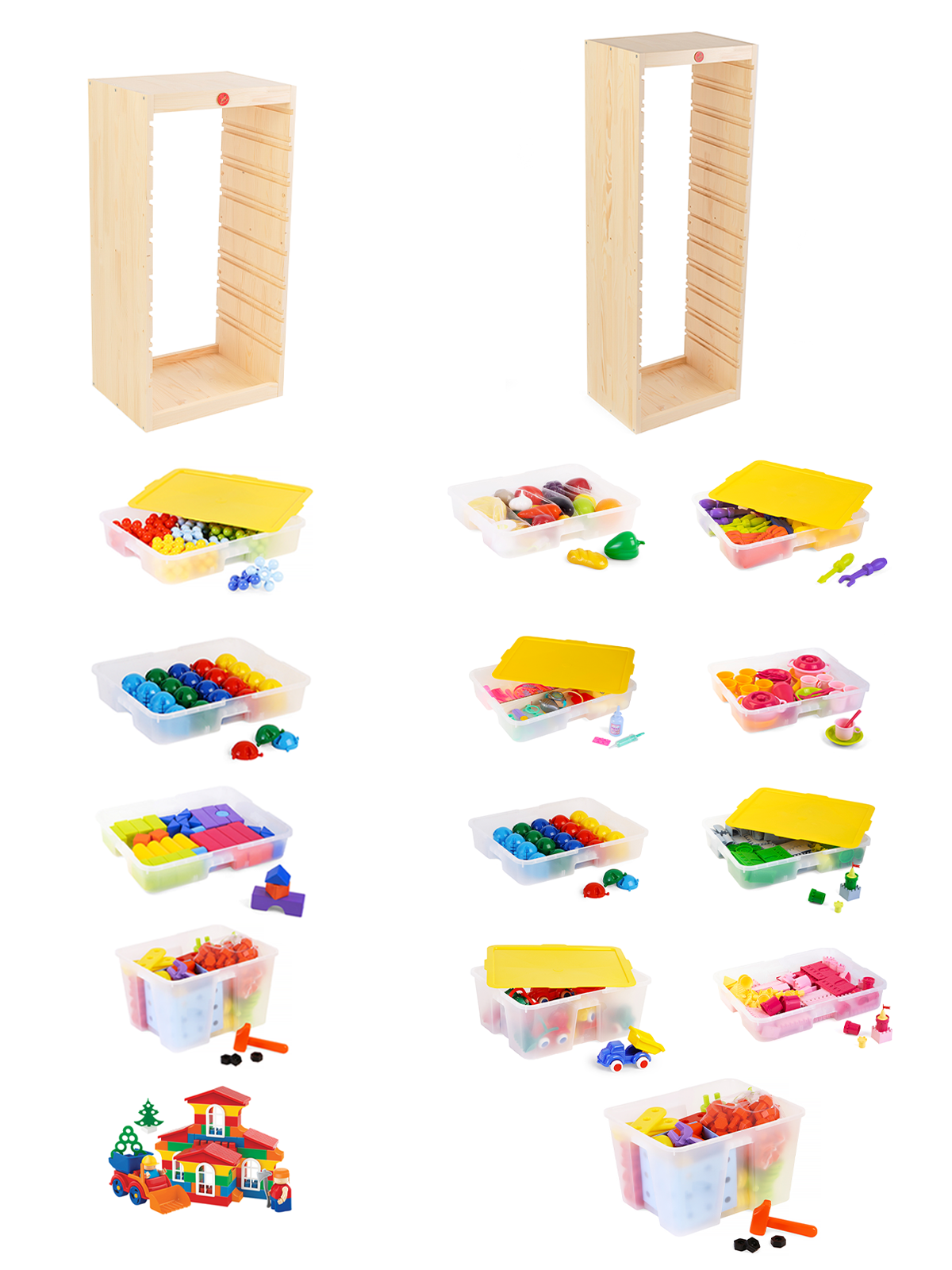Готовое решение для оснащения младшей группы детского сада включает комплект из пяти стеллажей, а также специально подобранный игровой материал для комплексного и всестороннего развития младших дошкольников. Комплектация: 7940 Стеллаж 520 с игровым комплектом Математика для детей 3-4 лет 7904 Стеллаж 930 с игровым комплектом Конструирование для детей 3-7 лет 7902 Стеллаж 1340 с игровым комплектом для детей 3-7 лет 7924 Стеллаж 930 с игровым комплектом Физкультура для детей 3-7 лет 7958 Стеллаж 520 с комплектом Персонажей для кукольного театра для детей 3-7 лет