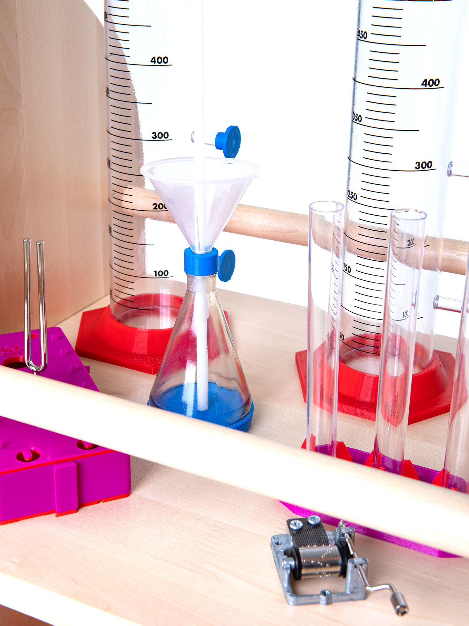 Комплектация: - 8613 Универсальный мобильный стеллаж / 490 - 8310 Мобильный игровой стеллаж 520х460 - Оборудование и материалы для проведения более 20 научных опытов - Методические рекомендации для педагога и карточки с описаниями опытов - Запасные элементы