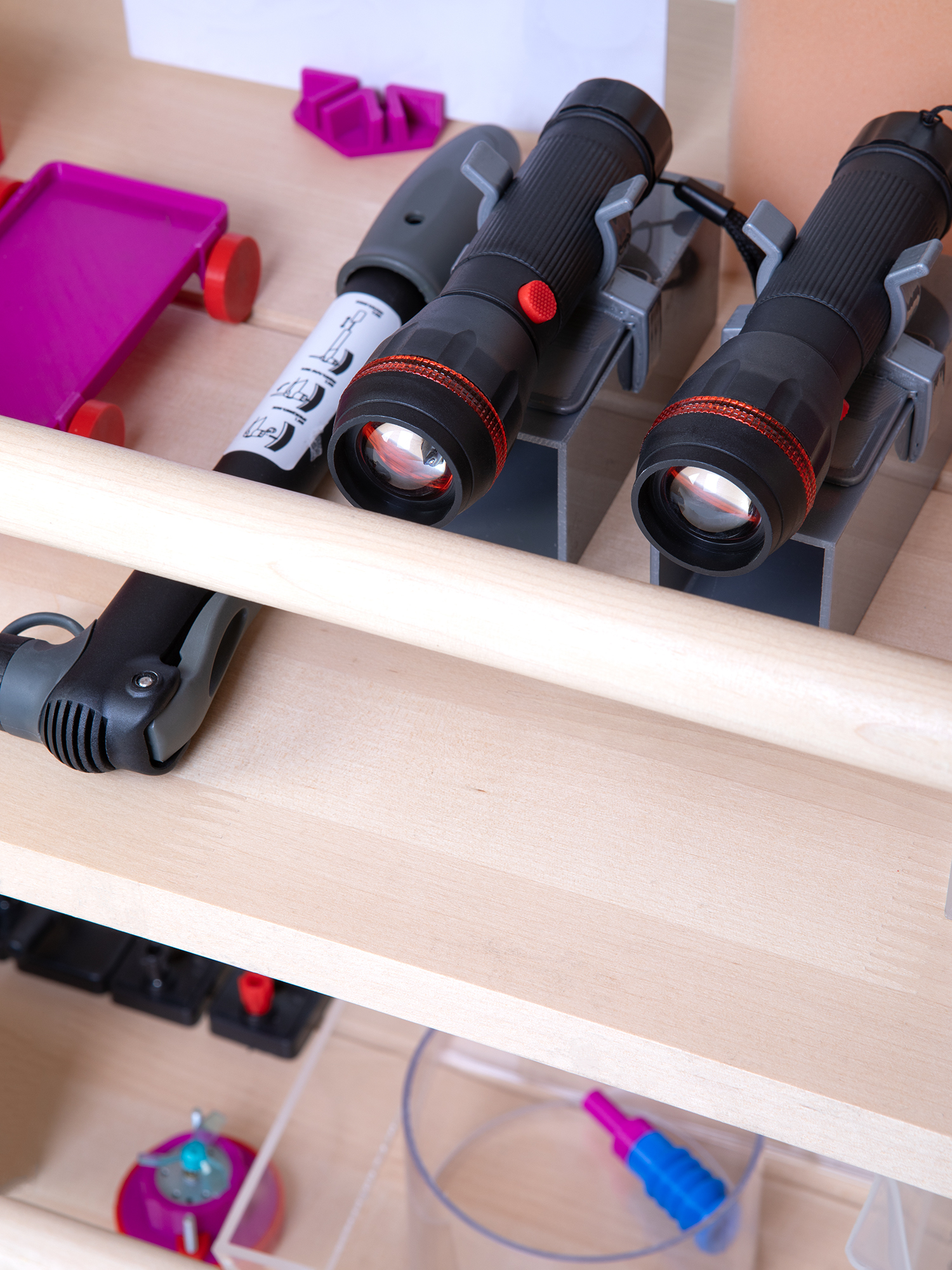 Комплектация: - 8338 Универсальный мобильный стеллаж / 980 - 8310 Мобильный игровой стеллаж 520х460 - Оборудование и материалы для проведения более 35 научных опытов - Методические рекомендации для педагога и карточки с описаниями опытов - Запасные элементы