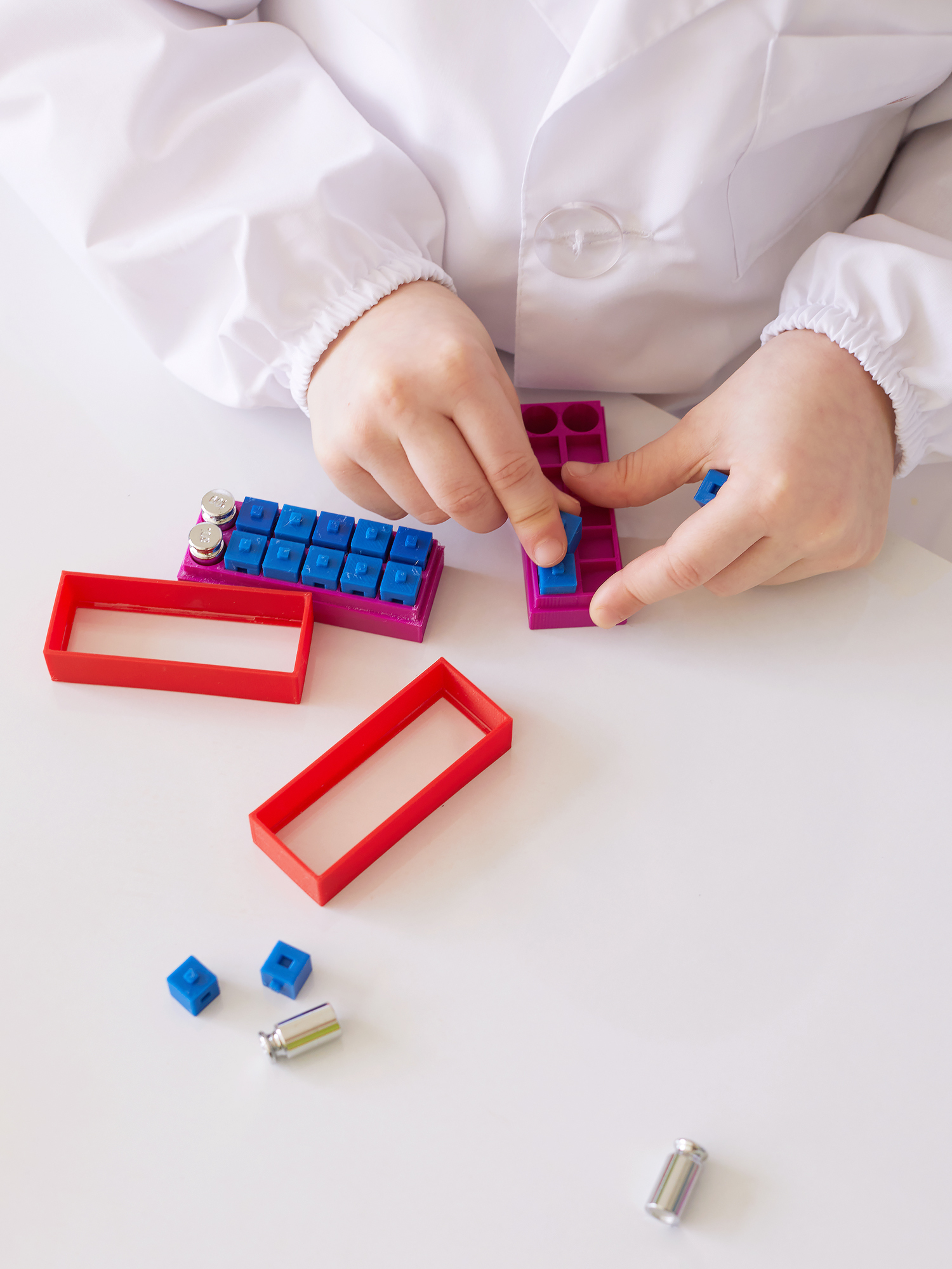 Комплектация: - 8613 Универсальный мобильный стеллаж / 490 - 8310 Мобильный игровой стеллаж 520х460 - Оборудование и материалы для проведения более 25 научных опытов - Методические рекомендации для педагога и карточки с описаниями опытов - Запасные элементы