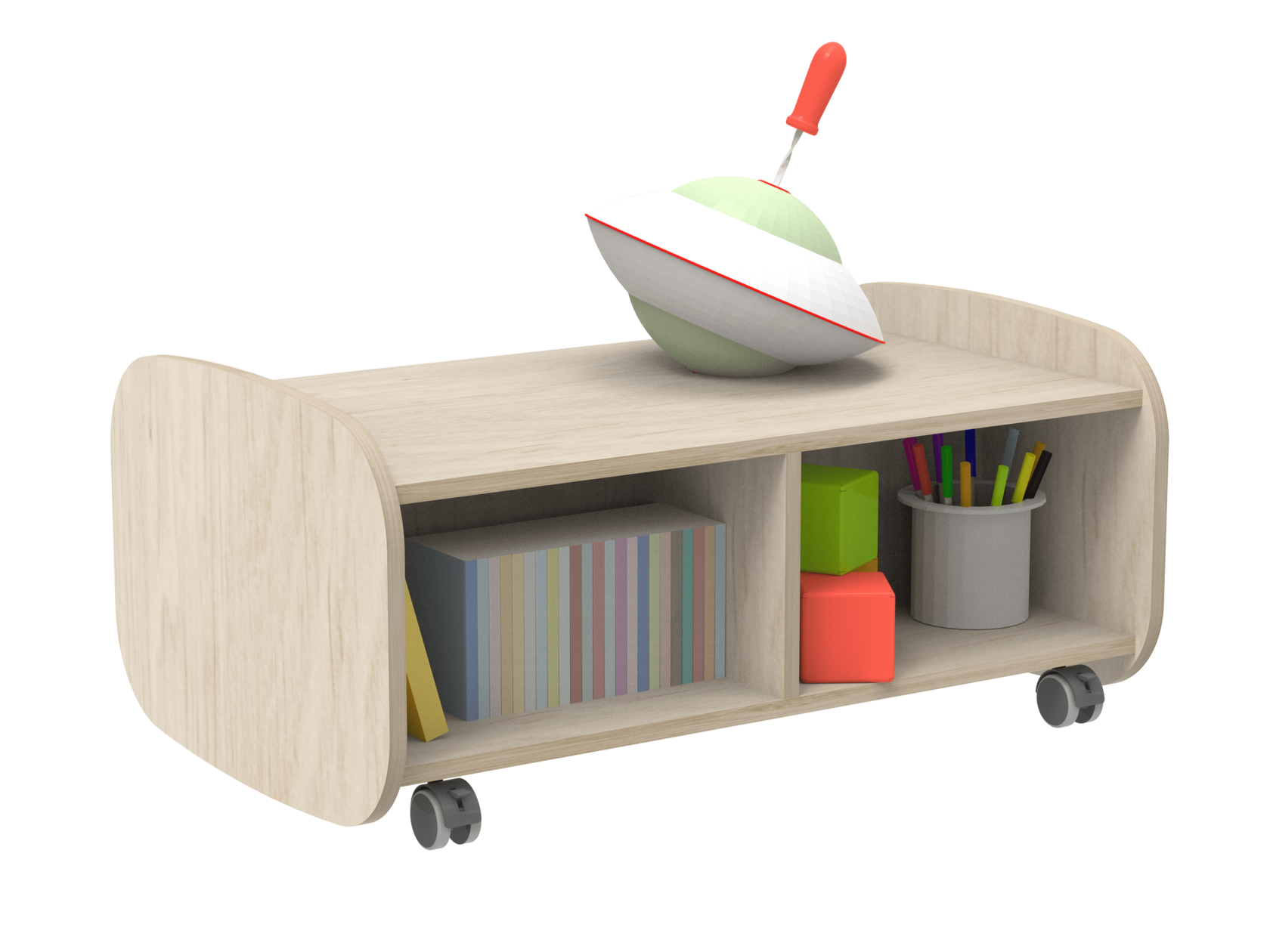 Мобильная тумба используется для хранения различных вещей, быстрого зонирования помещения, а также игровой деятельности дошкольников. Для дошкольников важно, чтобы предметы для творчества и игр находились в свободном доступе: это помогает развитию инициативы и предоставляет возможность выбирать себе занятие в свободное время. Небольшая высота изделия и лёгкость позволяет детям самостоятельно передвигать тумбу в зависимости от их потребностей.